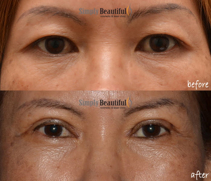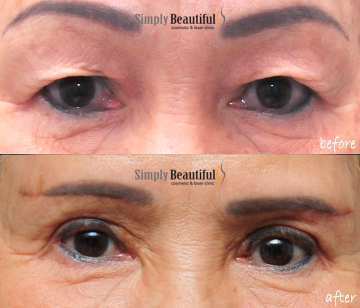 When sagging upper eyelid skin is caused by the heavy eyebrows, the best solution is to lift the upper eyelid skin from eyebrow. It is akin to facelift for upper eyelids.