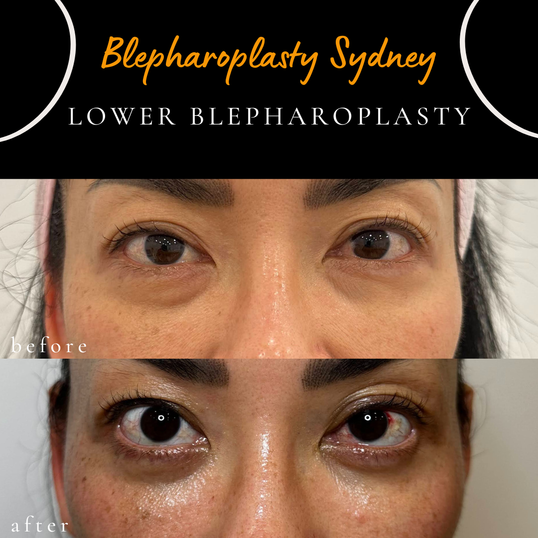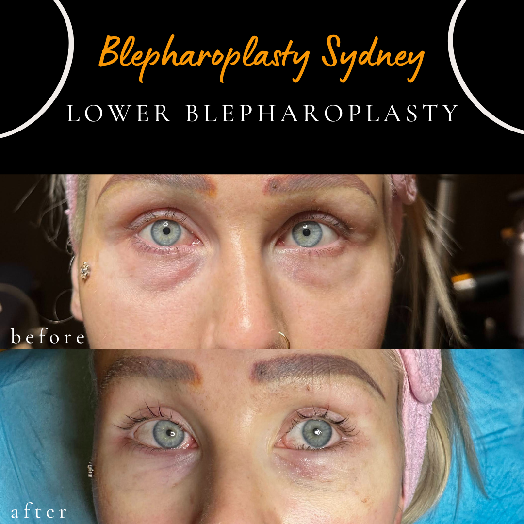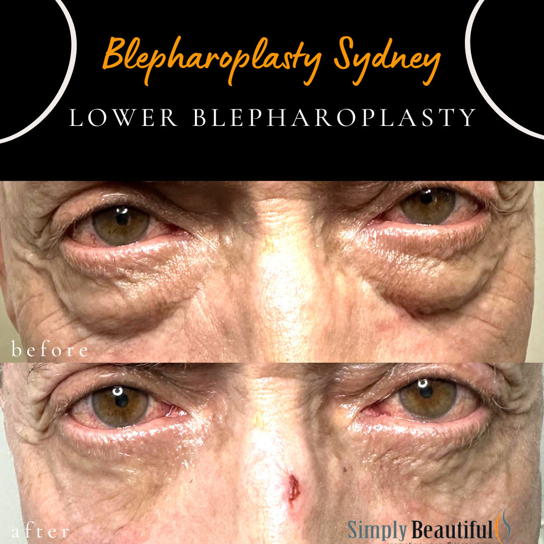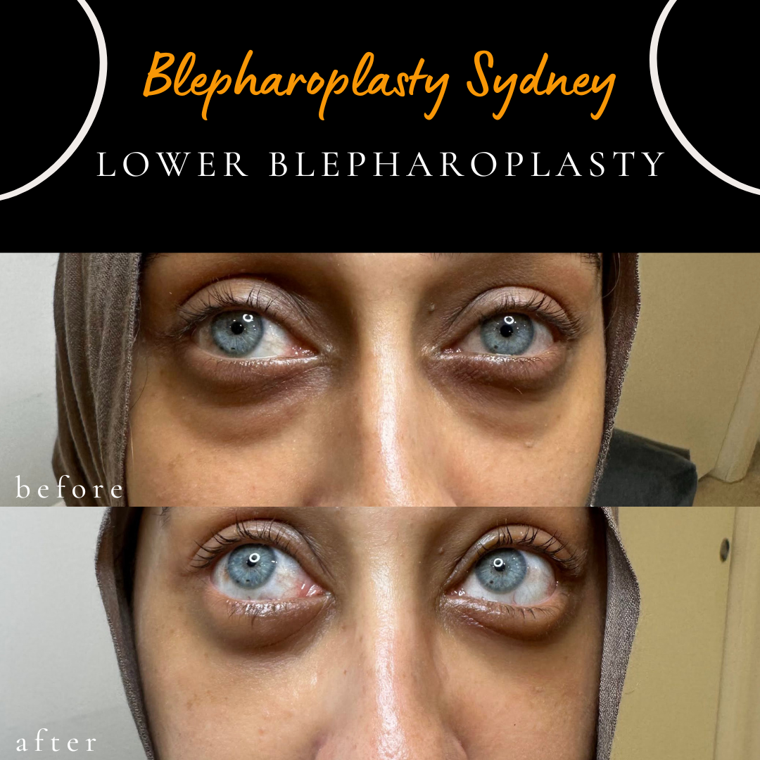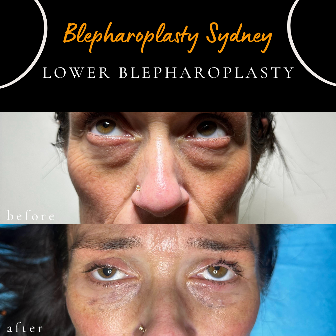 after lower eyelid blepharoplasty, performed to address lower eyelid fullness. The procedure may be performed under local anaesthesia, where clinically appropriate. In this case, an internal (transconjunctival) approach was used, which avoids an external skin incision. Individual healing and results vary.